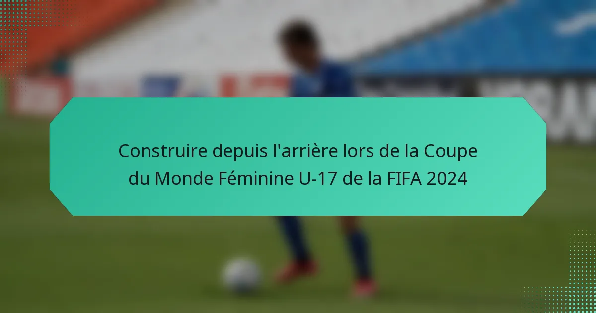 Construire depuis l’arrière est une approche tactique clé dans la Coupe du Monde Féminine U-17 de la FIFA 2024, où les équipes mettent l’accent sur un jeu structuré et la possession du ballon à partir de leur ligne défensive. Cette stratégie repose sur les gardiens de but et les défenseurs pour initier les attaques par des passes courtes et précises, favorisant un style cohérent qui améliore les opportunités de marquer. Les équipes qui maîtrisent cette technique ne se contentent pas de prioriser la possession, mais démontrent également une compréhension approfondie de l’exécution tactique, ce qui est vital pour leur succès dans le tournoi.