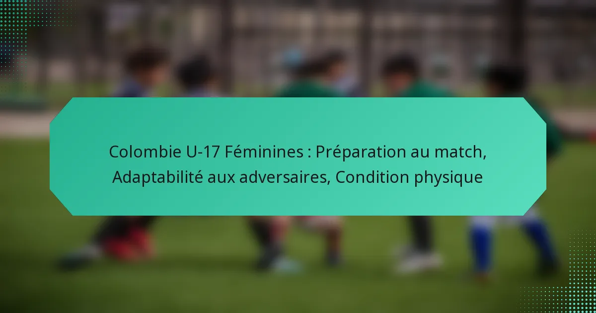 La préparation des matchs pour la sélection féminine U-17 de Colombie implique divers défis, notamment la gestion des blessures, l’adaptation à différents styles d’adversaires et l’assurance d’un conditionnement physique optimal. Ces facteurs sont cruciaux pour maintenir la performance et la cohésion de l’équipe pendant les compétitions.