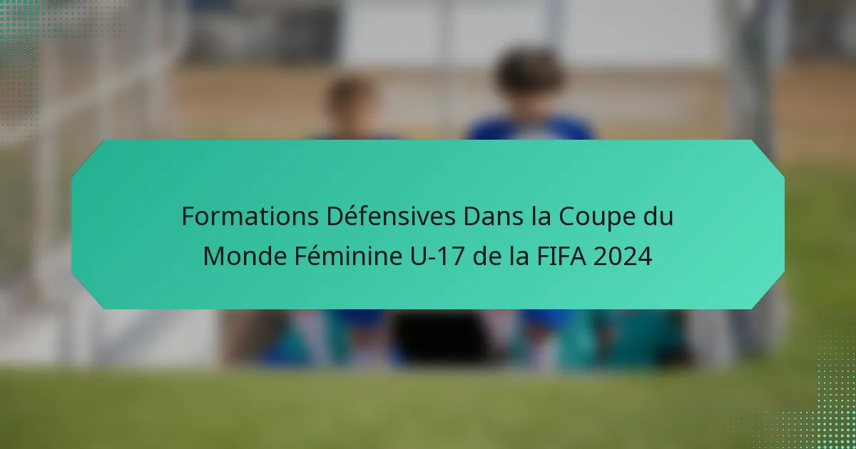 Les formations défensives au football, en particulier lors de la Coupe du Monde Féminine U-17 de la FIFA 2024, jouent un rôle crucial dans la détermination de la stratégie défensive d’une équipe. Chaque formation a des forces et des faiblesses uniques qui affectent la performance globale de l’équipe et son adaptabilité pendant les matchs.