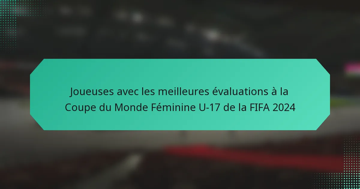 La Coupe du Monde Féminine U-17 de la FIFA 2024 met en avant plusieurs pays avec des joueuses remarquables, notamment celles ayant les meilleures notes. Ces notes reflètent la performance des joueuses, leurs compétences et leurs contributions à leurs équipes nationales durant le tournoi.