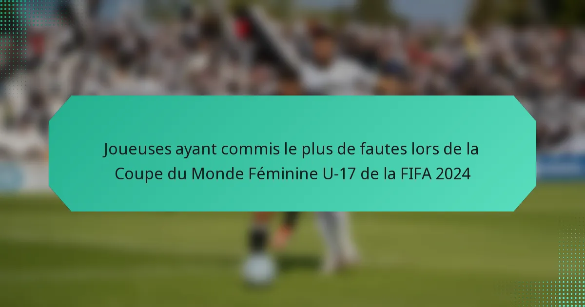 Lors de la Coupe du Monde Féminine U-17 de la FIFA 2024, plusieurs joueuses se sont distinguées par leur style de jeu agressif, entraînant un nombre élevé de fautes. Ces joueuses ont accumulé un nombre significatif de fautes, impactant les stratégies de leurs équipes et les résultats des matchs.