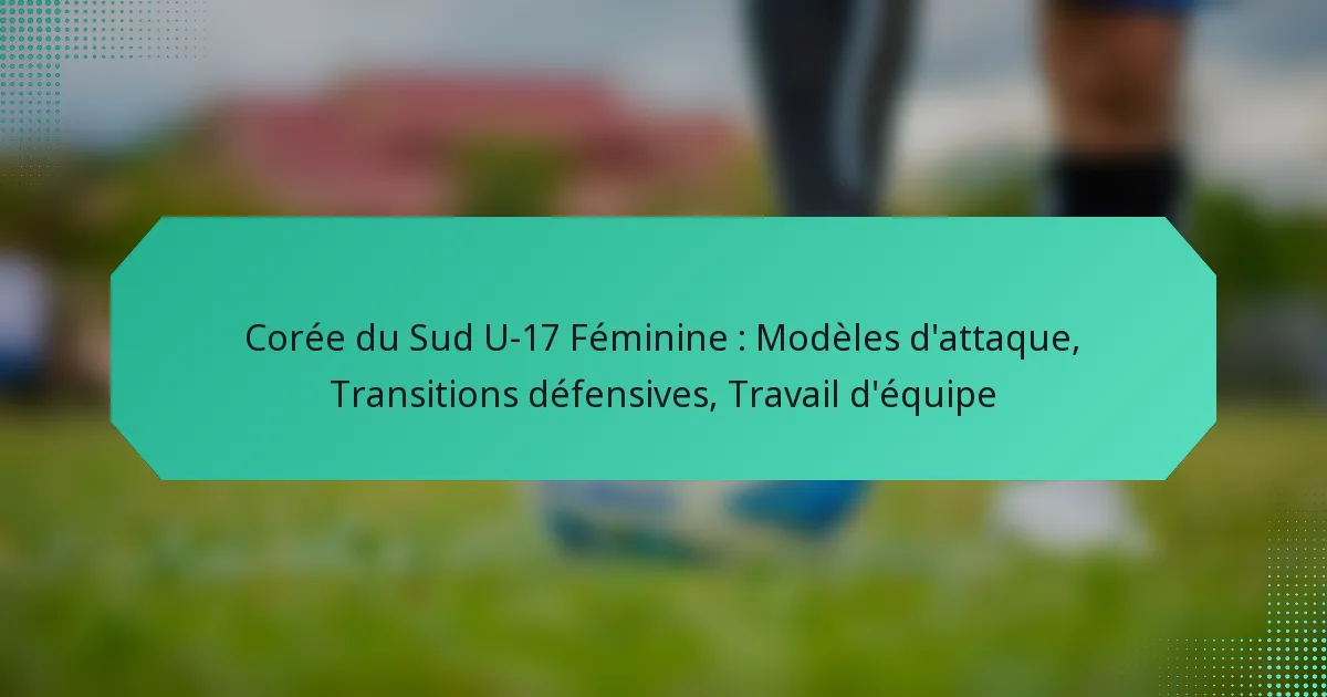 L’équipe féminine U-17 de Corée du Sud présente de fortes dynamiques de travail d’équipe qui améliorent leur performance sur le terrain. Les aspects clés incluent une communication efficace, un positionnement stratégique, des rôles de leadership et une synergie collaborative entre les joueuses, contribuant toutes à leur succès global lors des matchs.