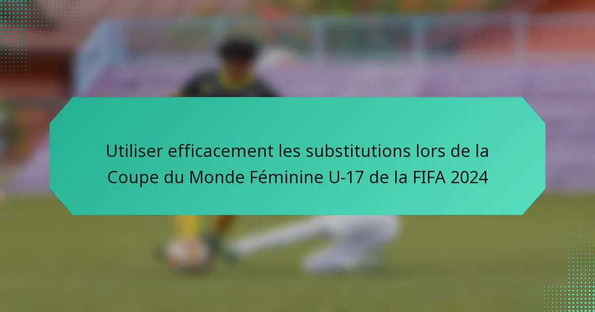Les substitutions efficaces lors de la Coupe du Monde Féminine U-17 de la FIFA 2024 peuvent influencer de manière significative les résultats des matchs. Les pratiques clés incluent le timing, les critères de sélection des joueuses et les stratégies pour gérer la fatigue tout en tenant compte de la dynamique globale du jeu.